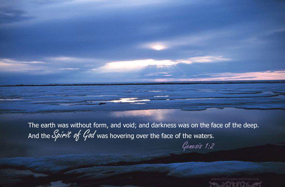 Scripture focus – Genesis 1:1-2 1 In the beginning, God created the heavens and the earth. 2 The earth was without form and void, and darkness was over the face of the deep. And the Spirit of God was hovering over the face of the waters.