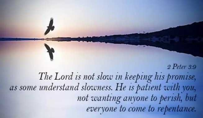 Scripture focus: 2 Peter 3:9 (ESV) The Lord is not slow to fulfill his promise as some count slowness, but is patient toward you, not wishing that any should perish, but that all should reach repentance.