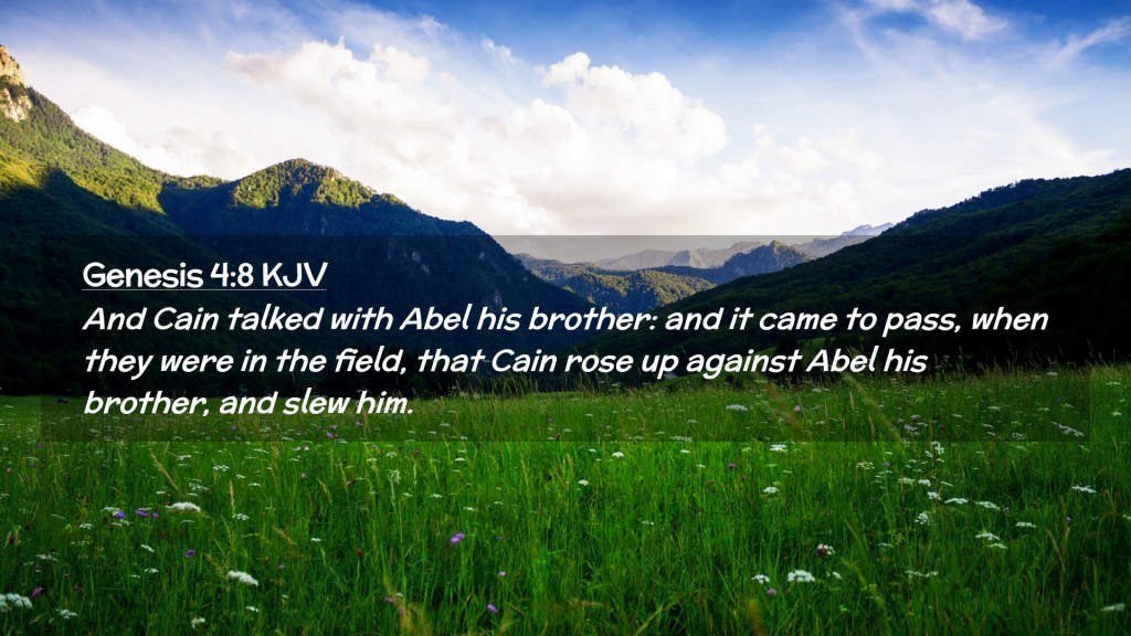 Genesis 4:8 – (KJV) “And Cain talked with Abel his brother: and it came to pass, when they were in the field, that Cain rose up against Abel his brother, and slew him.”