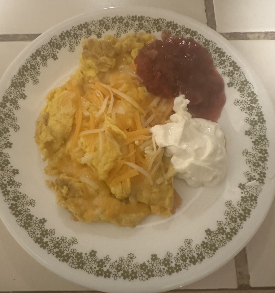 Secondly on my mind was Fiesta Eggs. There is this local restaurant that I like to go to and always order the same thing, Fiesta Eggs. They are simply just scrambled eggs with cheese, served with salsa and sour cream. I really love these eggs and was craving them this morning. Then it hit me, I had everything to prepare here and so that was breakfast. Thou they might not be the same they were really good. Again, the lesson, moving from what you were use to doing to a new thing or a new way of doing something that pleases. I didn’t have to go anywhere, pay anything, I just had to do it!