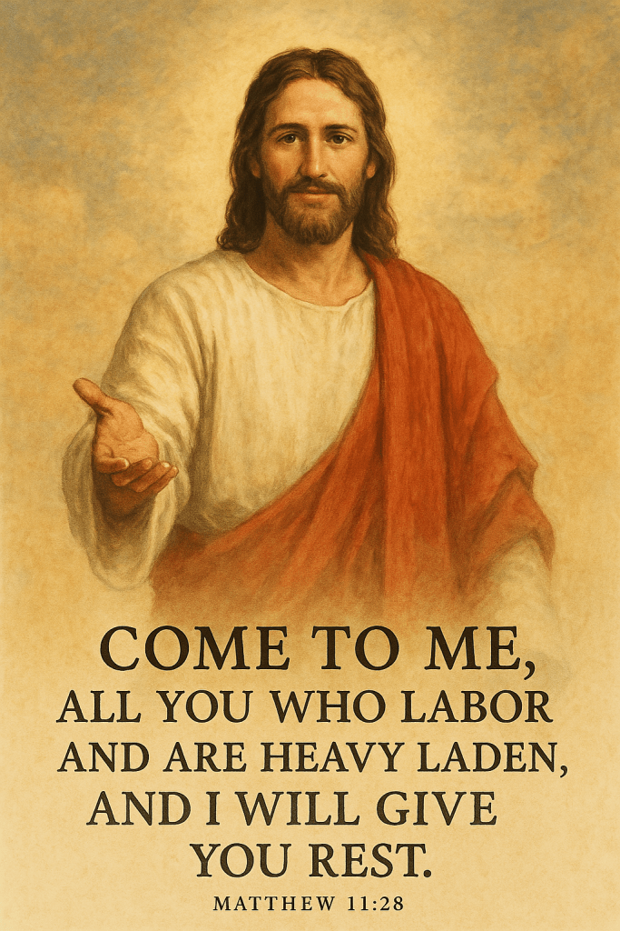 “Come to me, all you who are weary and burdened, and I will give you rest. Take my yoke upon you and learn from me, for I am gentle and humble in heart, and you will find rest for your souls. For my yoke is easy and my burden is light.”
