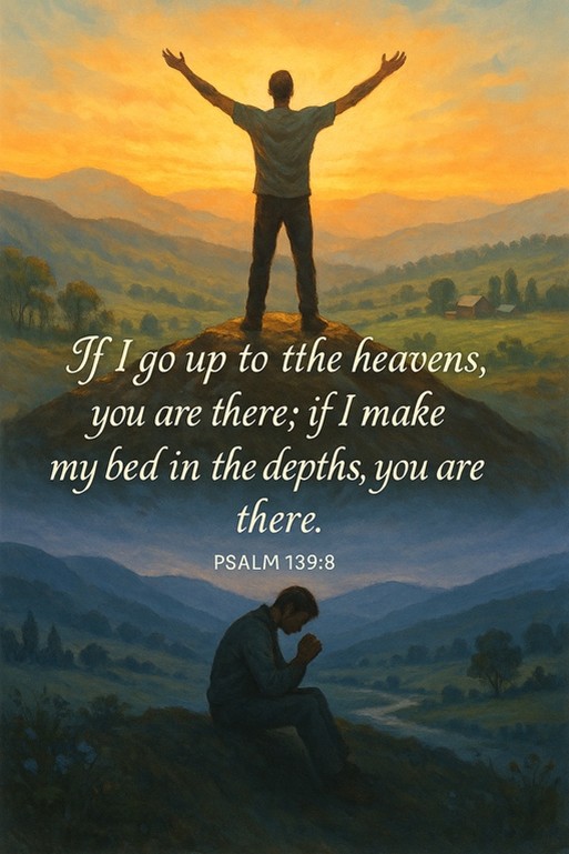Scripture: “If I go up to the heavens, you are there; if I make my bed in the depths, you are there.” — Psalm 139:8 (NIV)