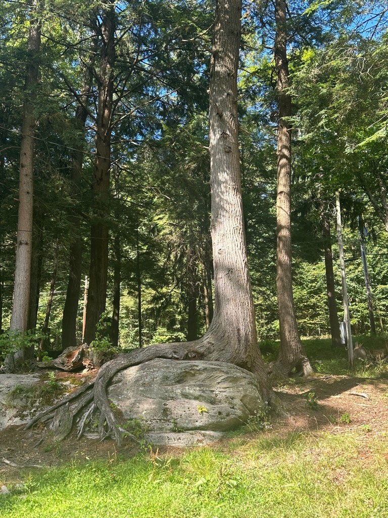 Last evening I was sitting at Wild Cat Park in Ludlow enjoying a Chicken BBQ in one of the pavilions. As I was facing the trees and woods that surrounds the park – I noticed a large tree that appeared as if it was growing out of a large rock. Actually, the tree only had room to grow if it wrapped its roots around this large boulder. (see the picture with this morning’s devotional.)