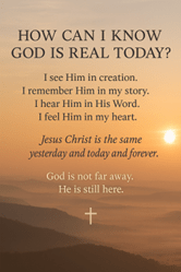 So when I ask, How can I know God is real today? the answer is this: because I see Him in creation, I remember Him in my story, I hear Him in His Word, and I feel Him in my heart. He is not far away—He is still here.