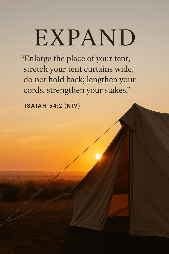 Scripture: “Enlarge the place of your tent, stretch your tent curtains wide, do not hold back; lengthen your cords, strengthen your stakes.” — Isaiah 54:2 (NIV)